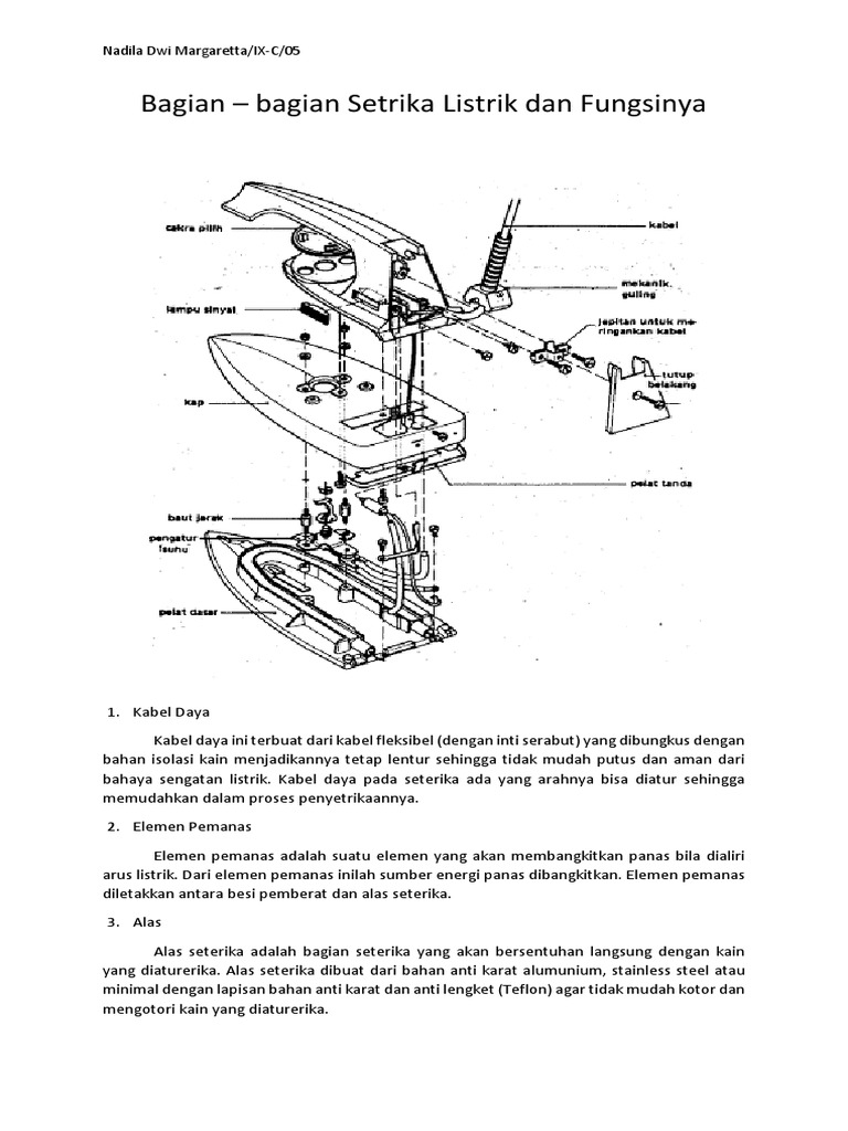 contoh gambar setrika listrik brseta bagian bagianya - Brainly.co.id