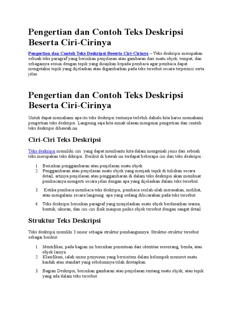 struktur bagian teks deskripsi yang berisikan gambaran atau pemaparan tentang suatu objek atau - Brainly.co.id