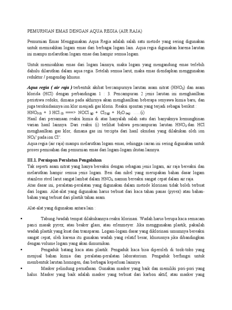 Pemurnian Emas Menggunakan Aqua Regia - bestekin.com