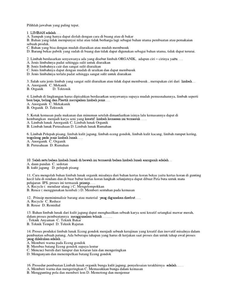1. jelaskan prinsip prinsip bahan limbah lunak 2. sebutkan dan jelaskan pengolahan bahan limbah - Brainly.co.id