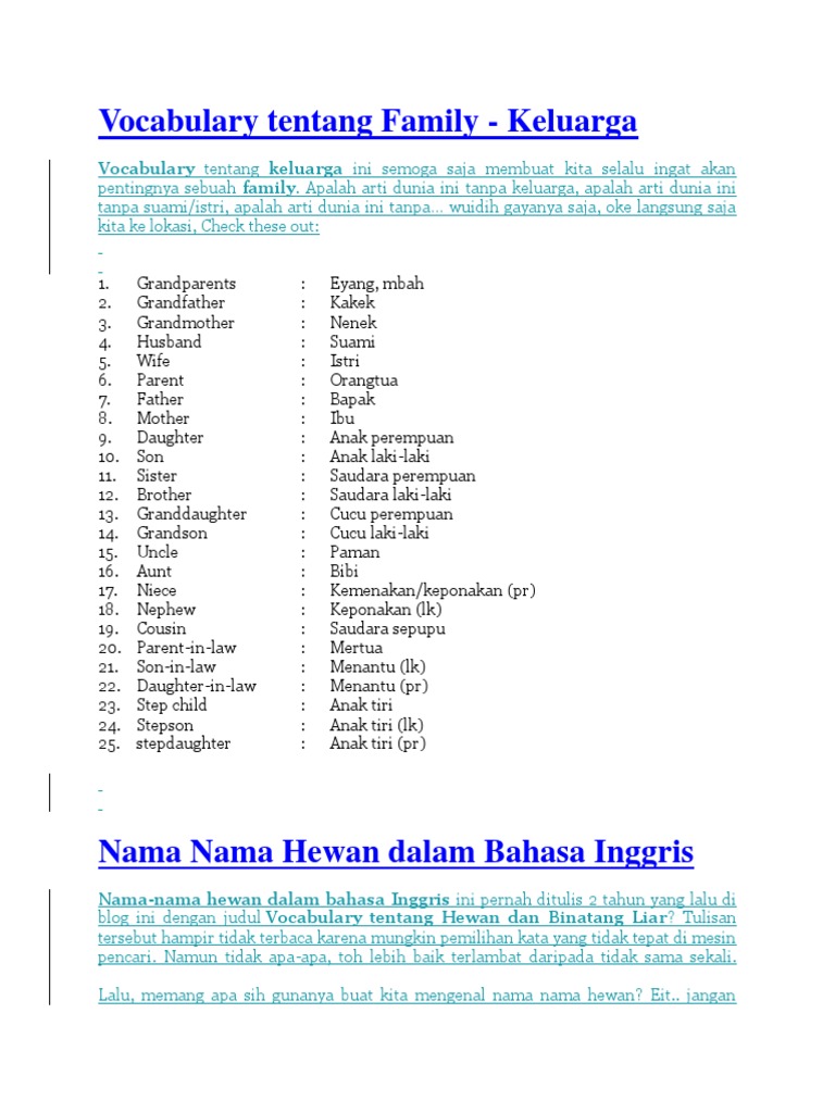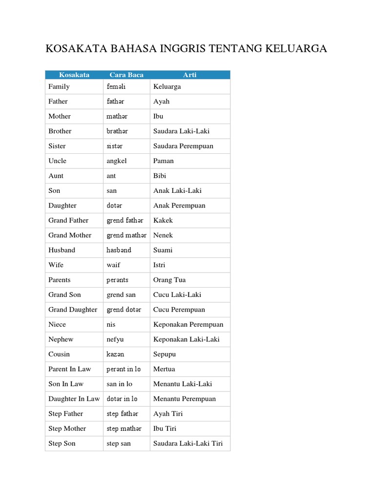 Latihan Kosakata Bahasa Inggris Tentang Keluarga dan Kerabat …