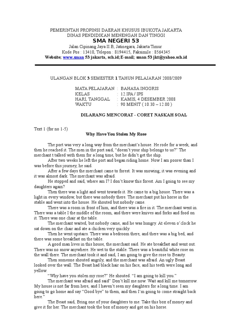 Soal Bahasa Inggris kelas 12 semester 1 dan 2 beserta jawabannya …