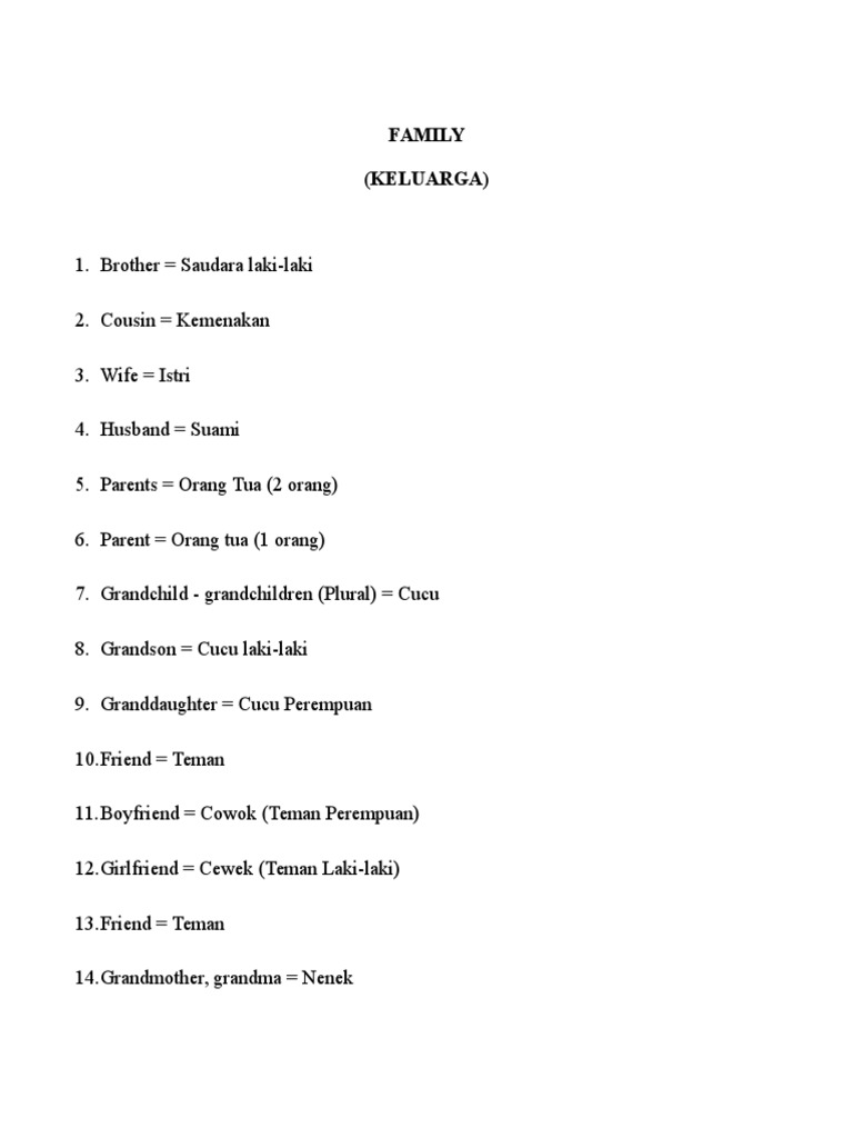 169 Kosakata Nama Anggota Keluarga Dalam Bahasa Inggris Beserta Artinya