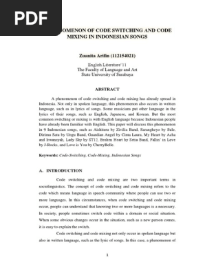 DOC) A Phenomenon of Code switching and Code Mixing in Indonesian Songs | Zuanita Arifin - Academia.edu