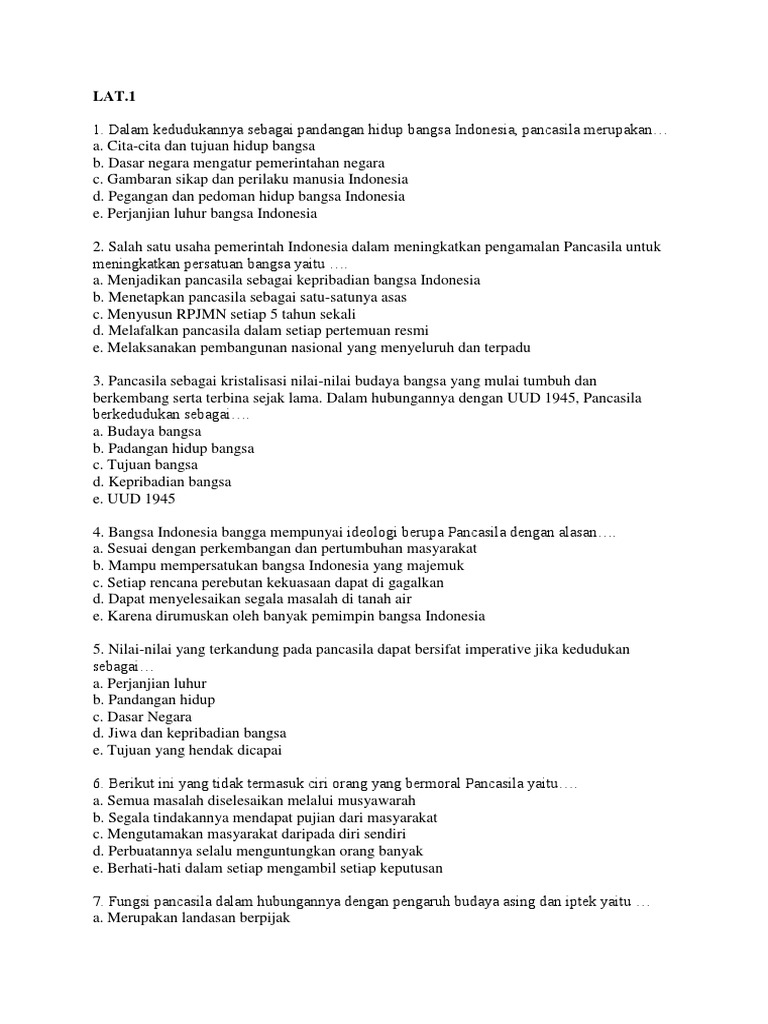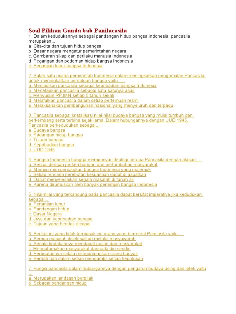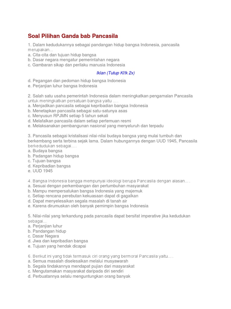 Tugas Sekolah: Kumpulan soal soal pengalaman pancasila sebagai …