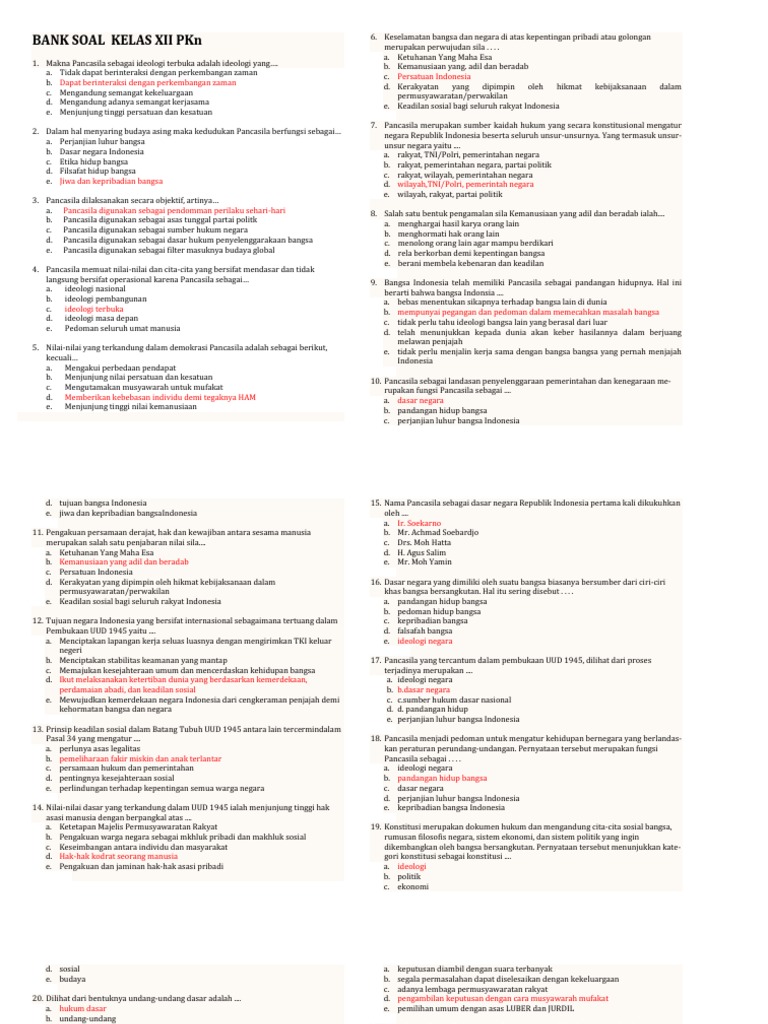 Bank Soal Kelas Xii Pkn