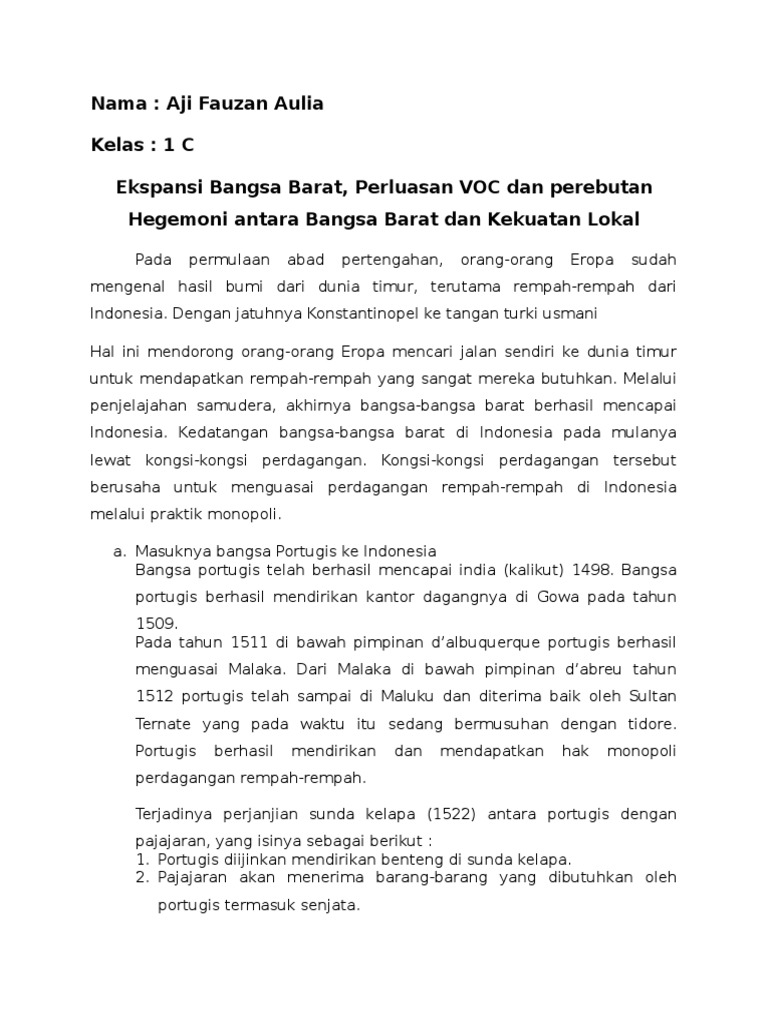 Masuknya Kekuasaan Asing dan Berkembangnya Kolonialisme dan …