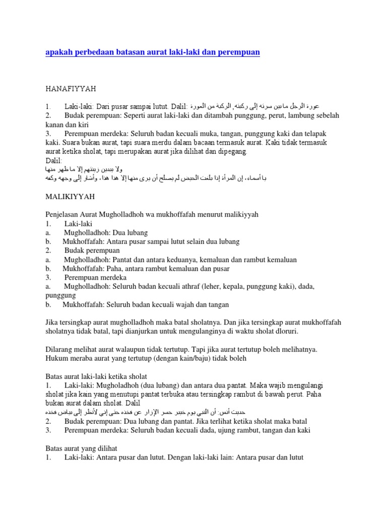 Perbedaan Batasan Aurat Laki-Laki dan Perempuan di Dalam dan Luar …