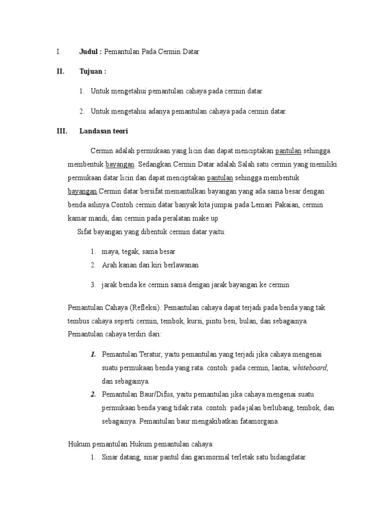 DOC) percobaan 3 CERMIN CEKUNG, CERMIN CEMBUNG DAN CERMIN DATAR …