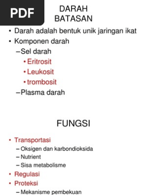 Darah merupakan bentuk jaringan ikat khusus, terdiri atas elemen