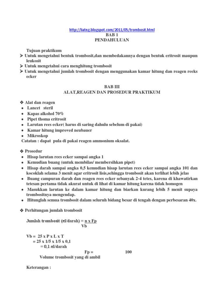 Hitung Jumlah Trombosit Metode Pipet - Indonesian Medical Laboratory