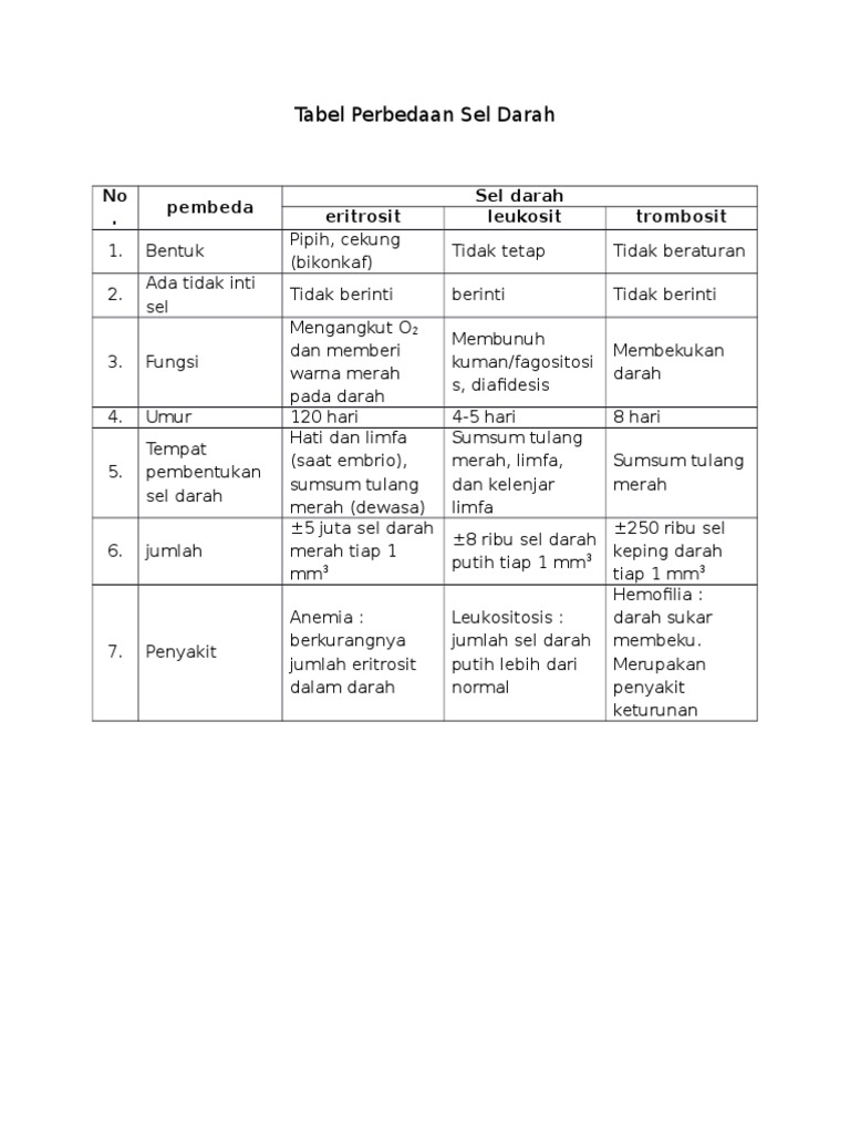 DOC) tabel perbedaan darah | Prima Windi Astuti - Academia.edu