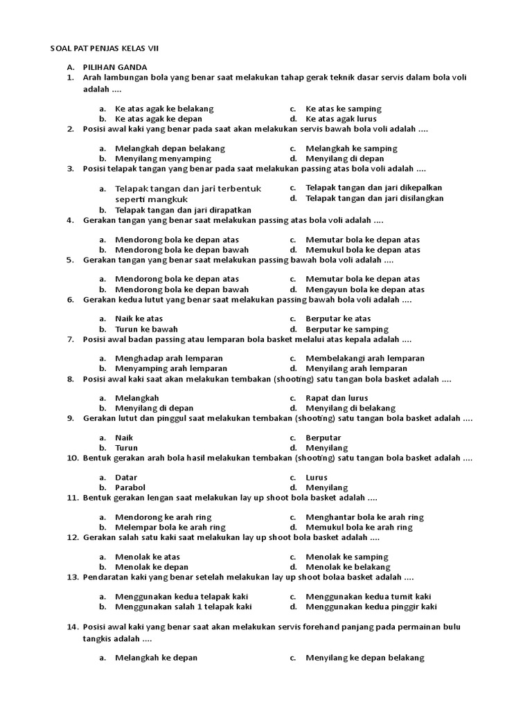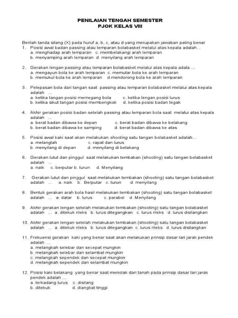 PDF) CONTOH SOAL UAS PJOK KELAS 8 K13 | Benedict Satria and …