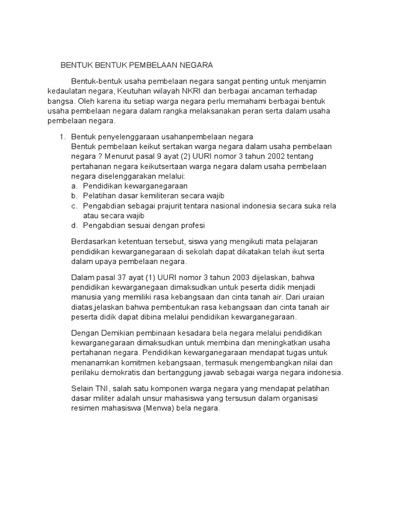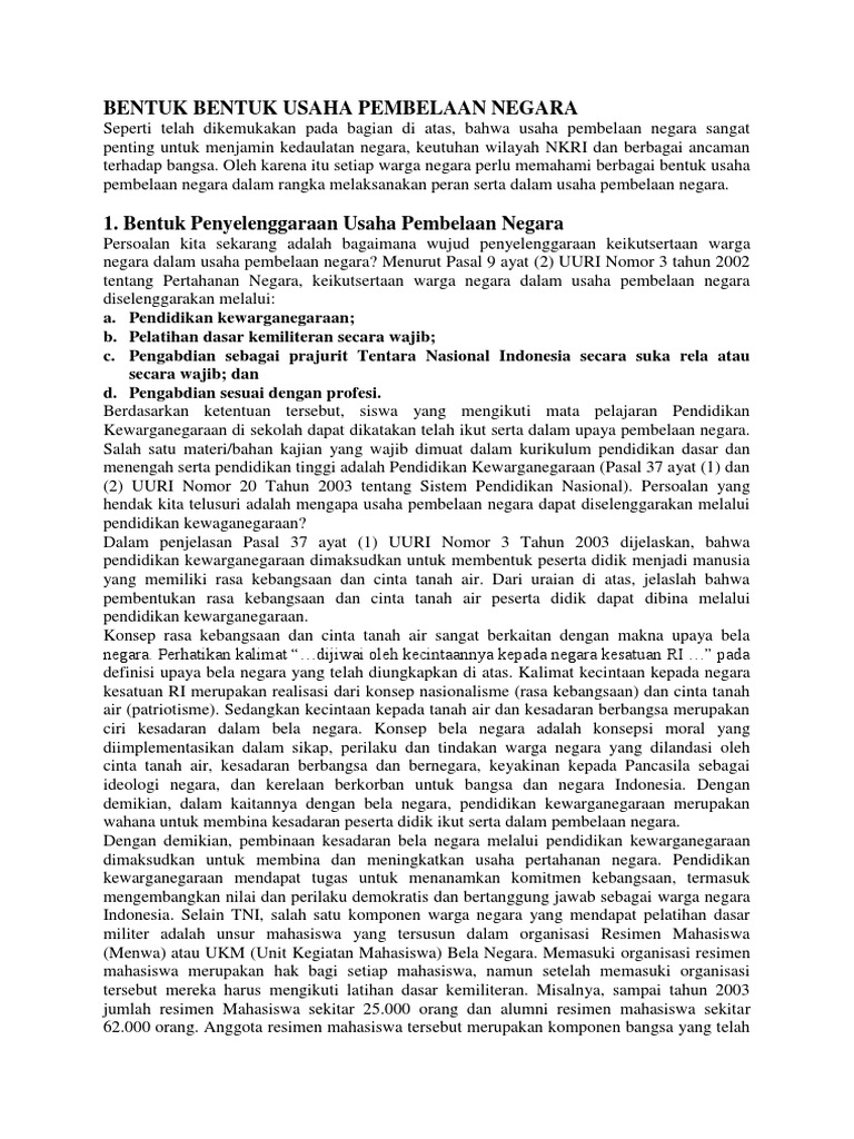 Bentuk Bentuk Penyelenggaraan Usaha Bela Negara - Seputar Bentuk