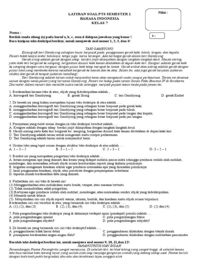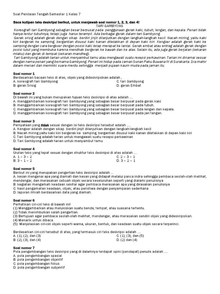 Contoh Soal Teks Deskripsi (Kelas VII) - PELAJARAN BAHASA …