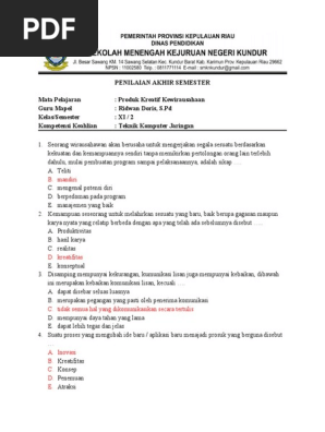 Soal Produk Kreatif dan Kewirausahaan (PKK) Kelas XI Sem 2 Kurikulum Terbaru - Elearning Web Guru