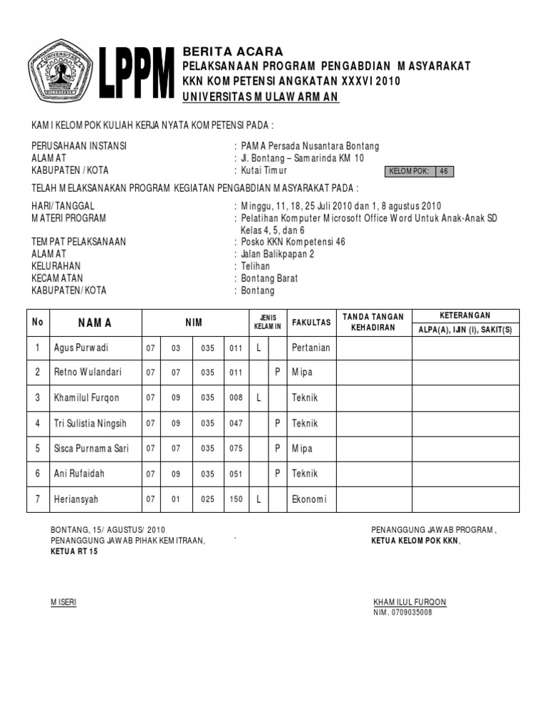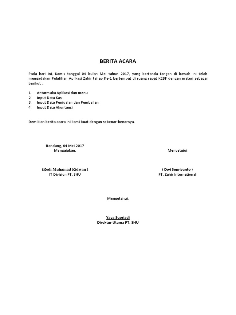Contoh Berita Acara Kegiatan Pelatihan - supernalantique