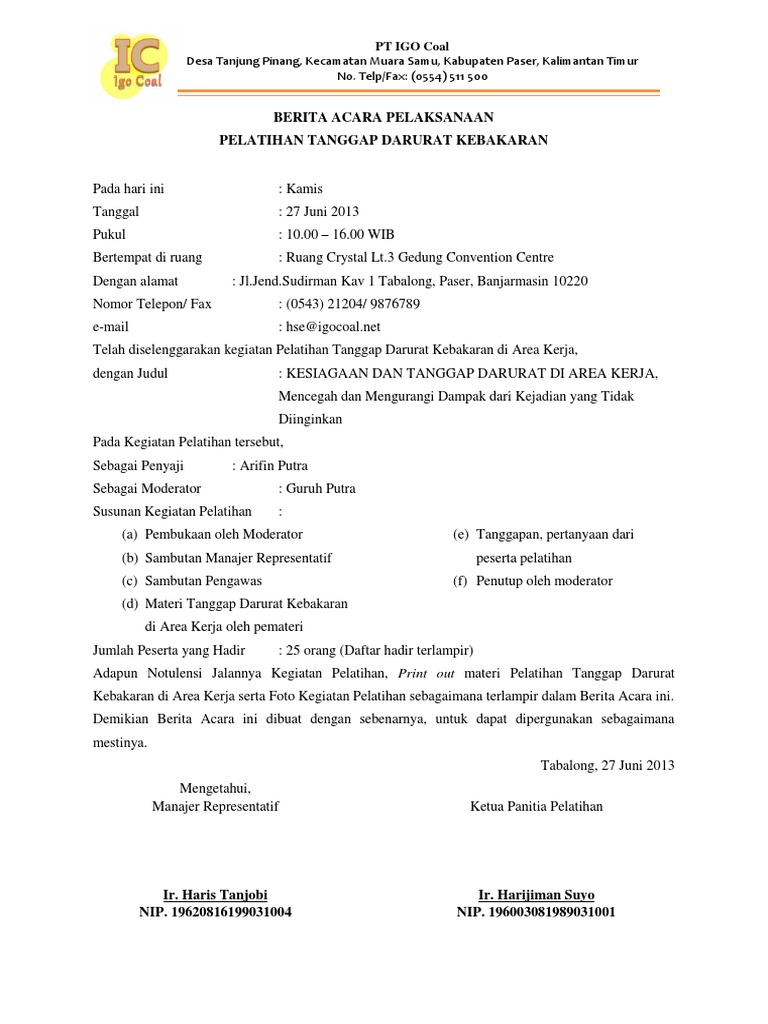 Contoh Berita Acara Kegiatan Pelatihan - indianskiey