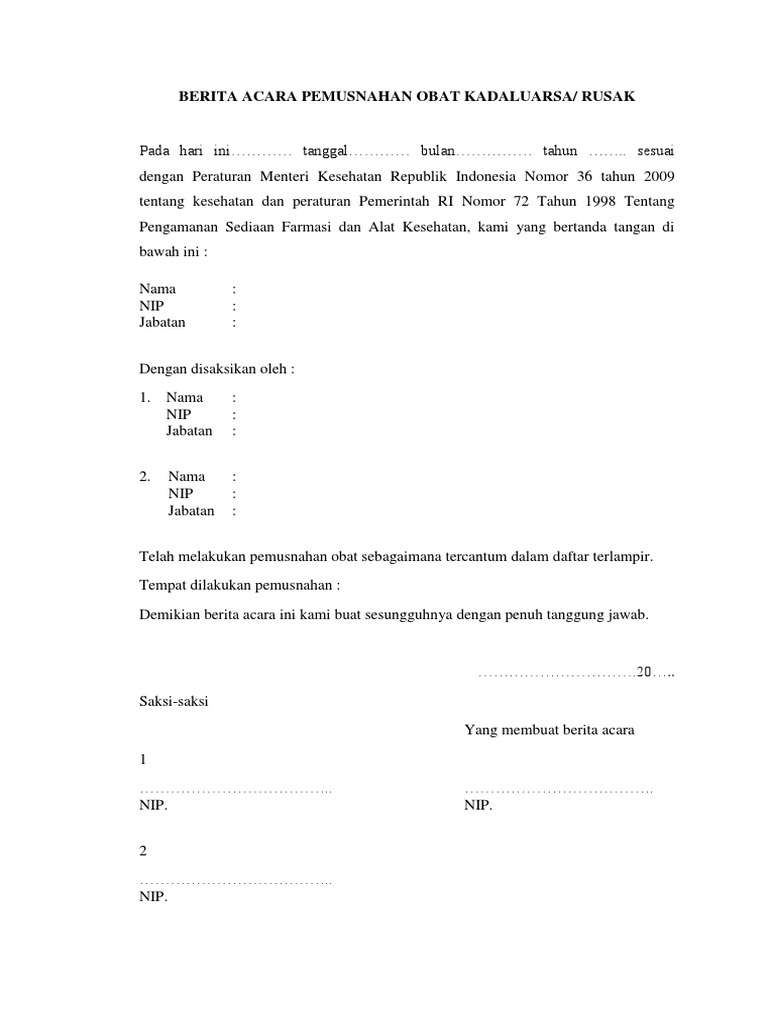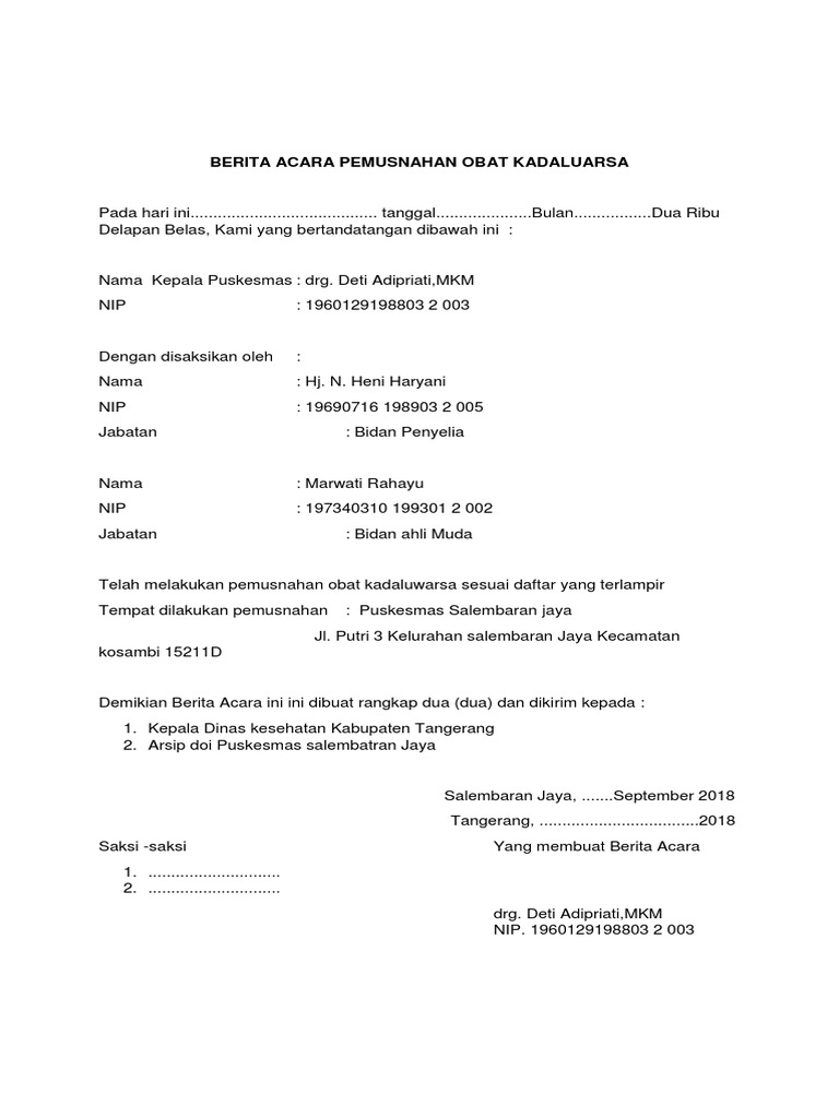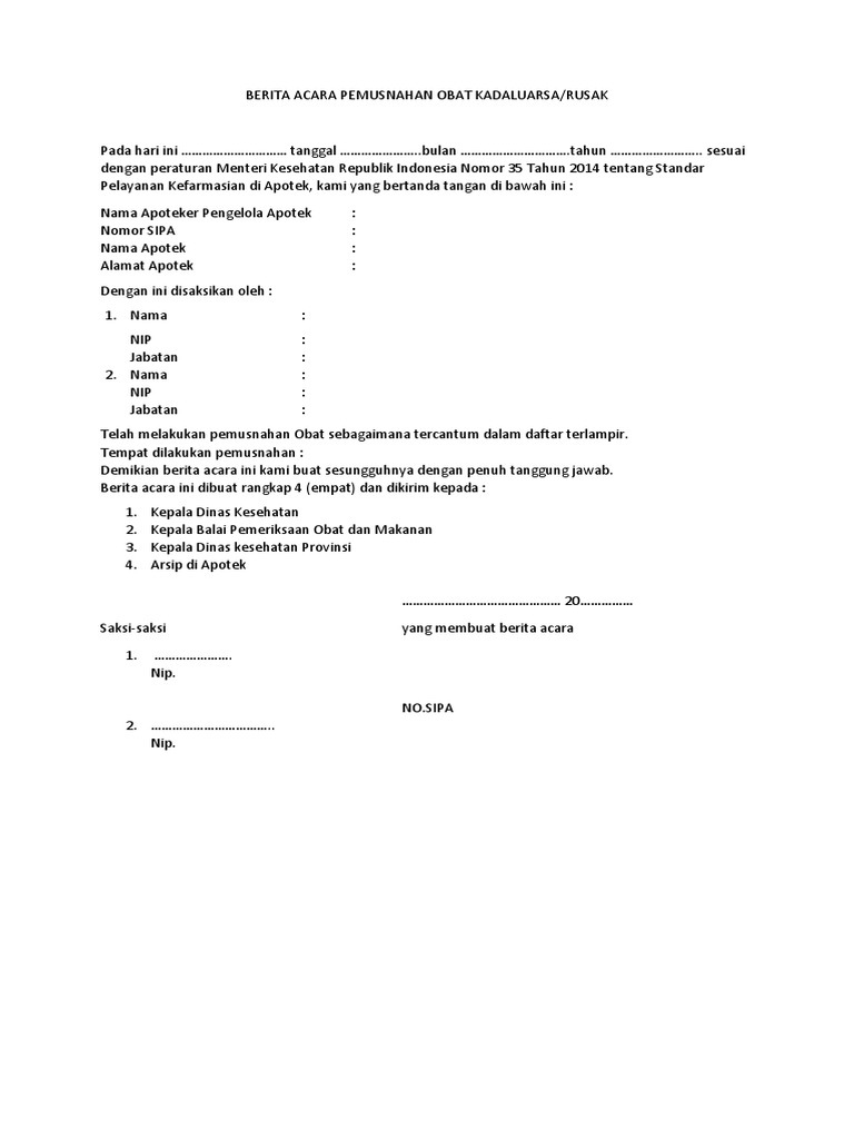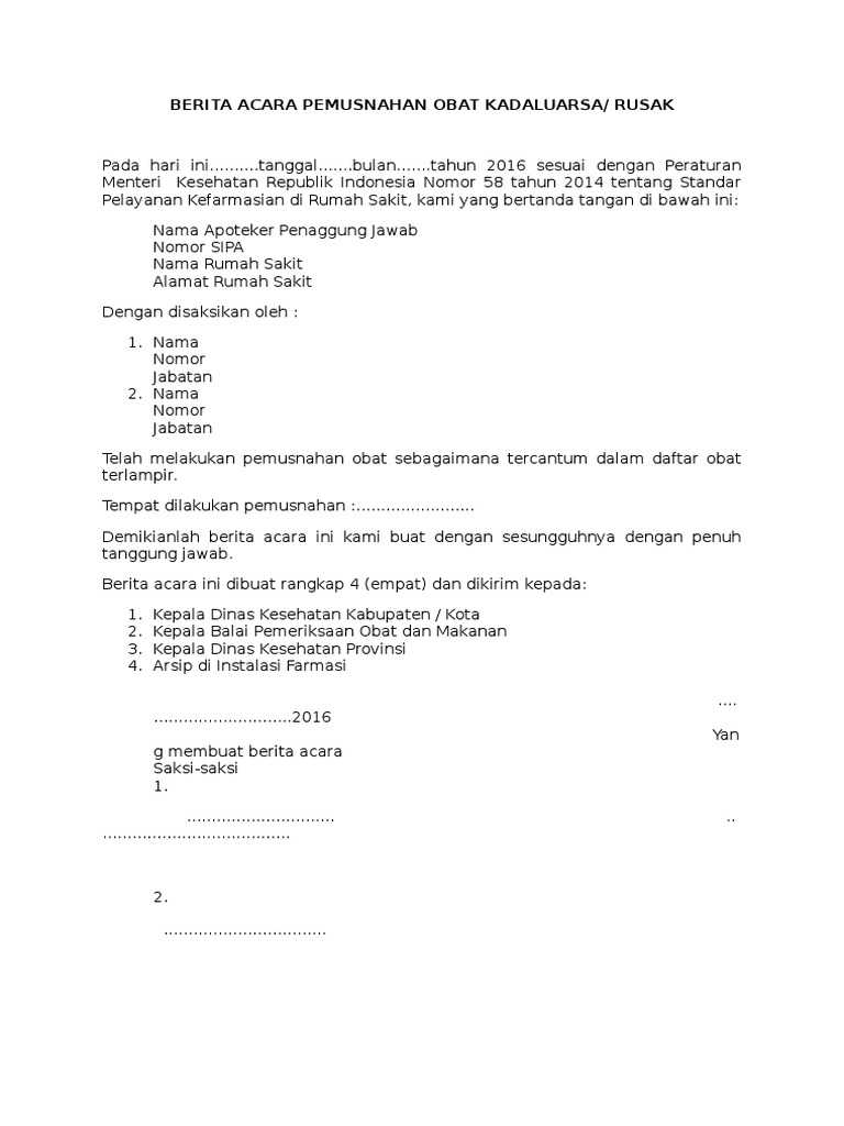 Contoh Surat Berita Acara Pemusnahan Obat Kadaluarsa – ID.Lif.co.id