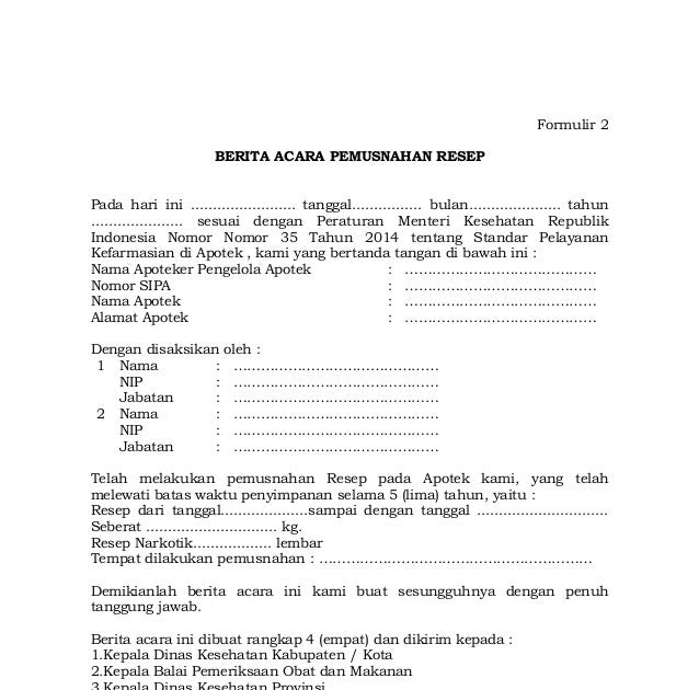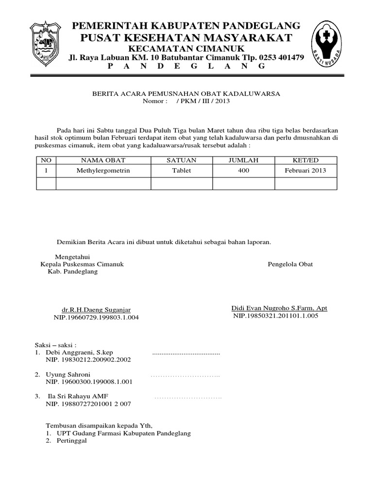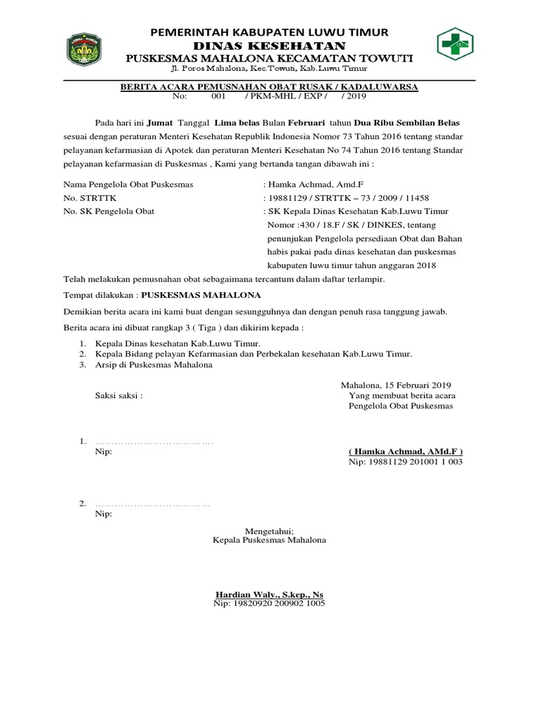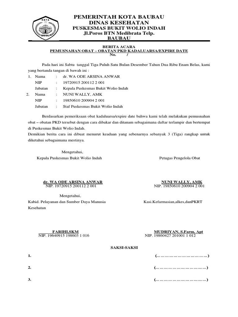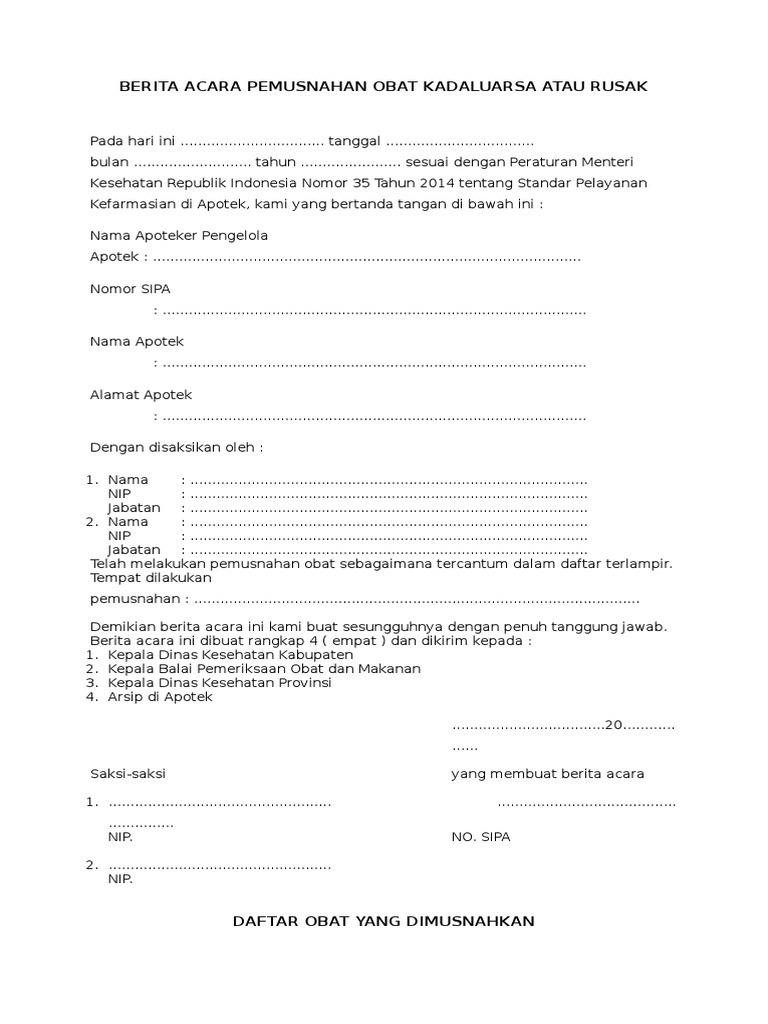 Contoh Surat Berita Acara Pemusnahan Obat Kadaluarsa – ID.Lif.co.id