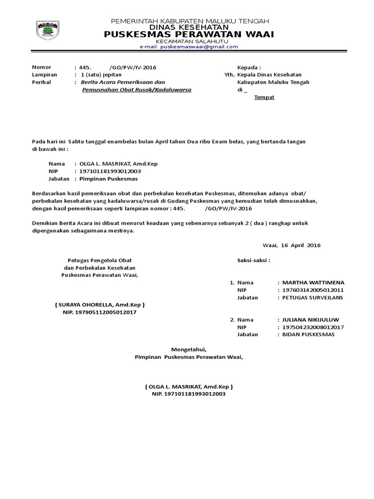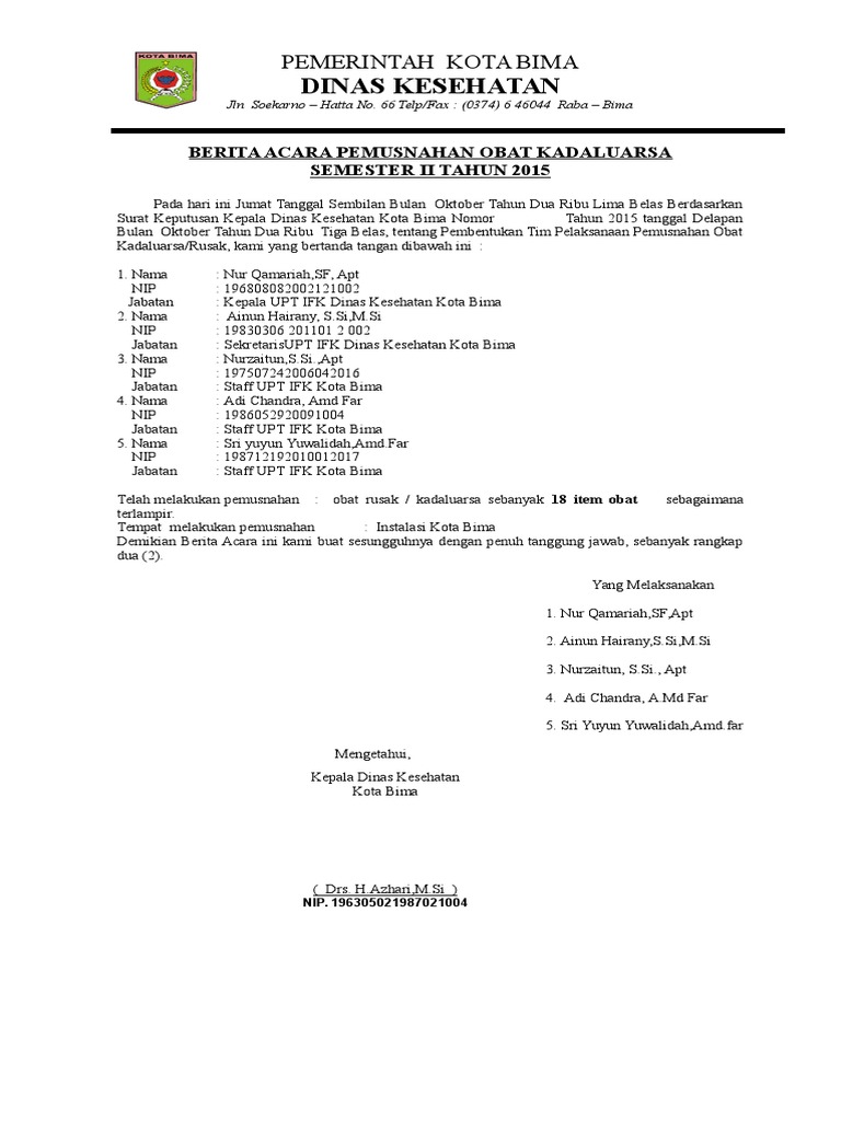 Contoh Berita Acara Pemusnahan Obat - Rasmi Re