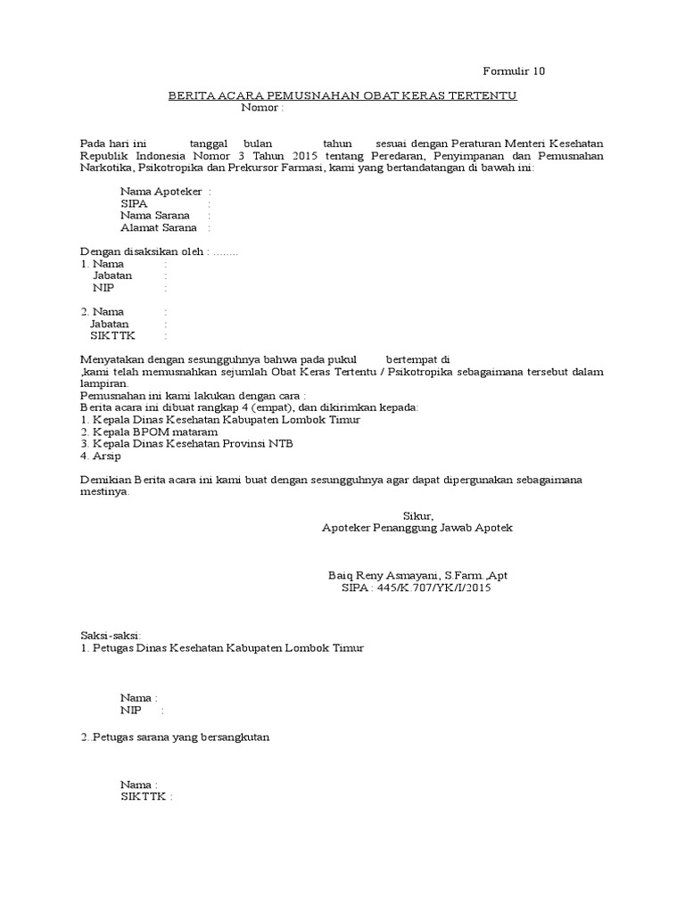 Contoh Surat Berita Acara Pemusnahan Obat – Contoh.Lif.co.id