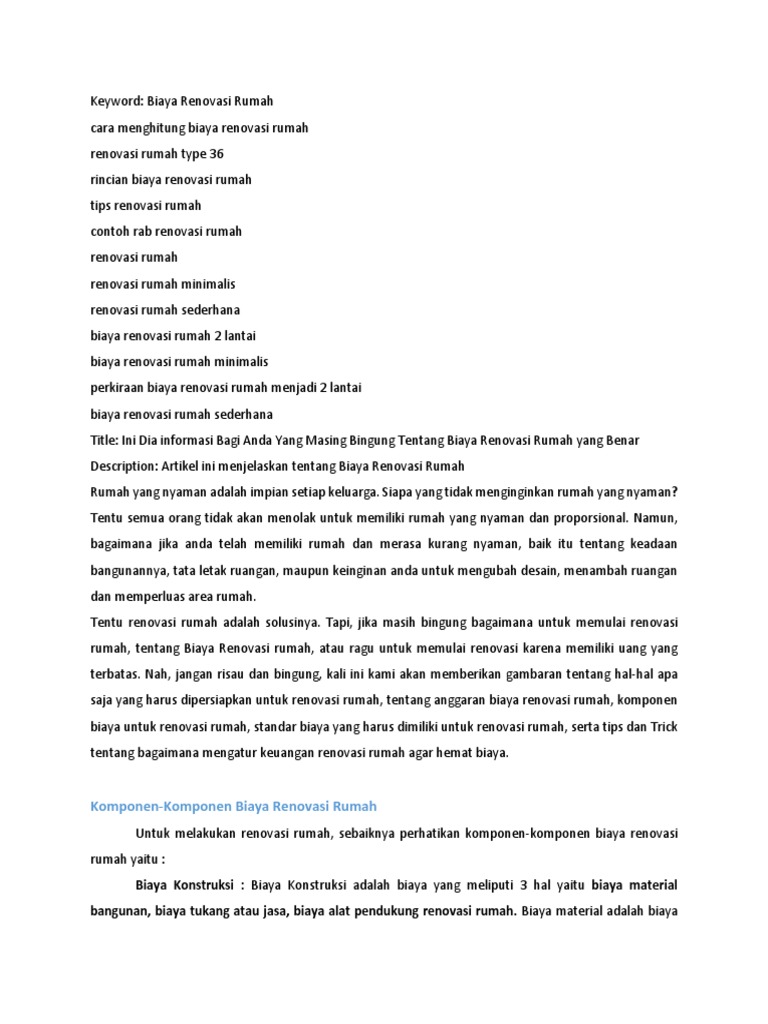 rencana anggaran biaya renovasi rumah minimalis di bandung wa …