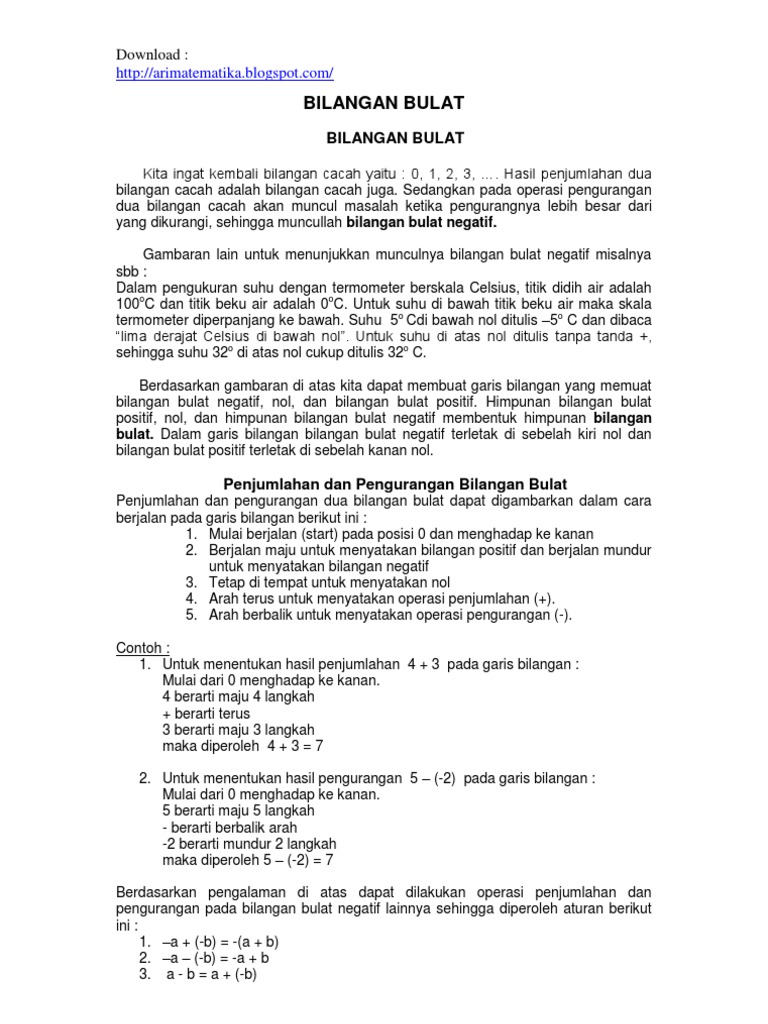 Operasi Hitung Bilangan Bulat Positif dan Negatif Lengkap - Berpendidikan.Com