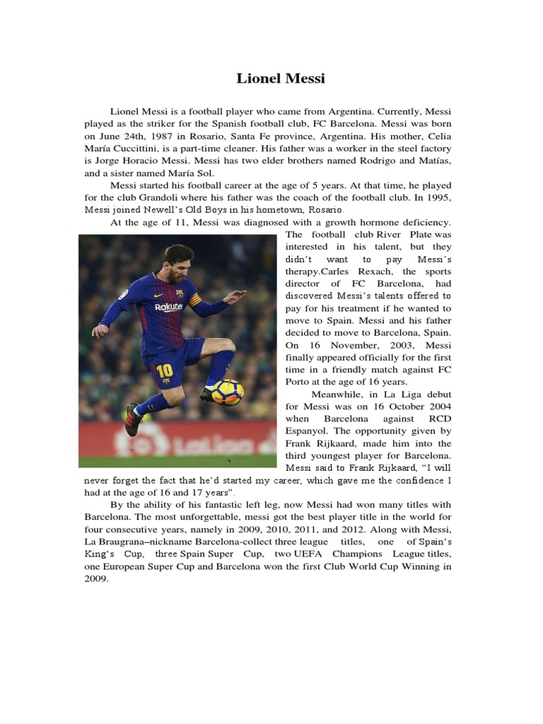 Biografi Messi Dalam Bahasa Inggris – Pigura