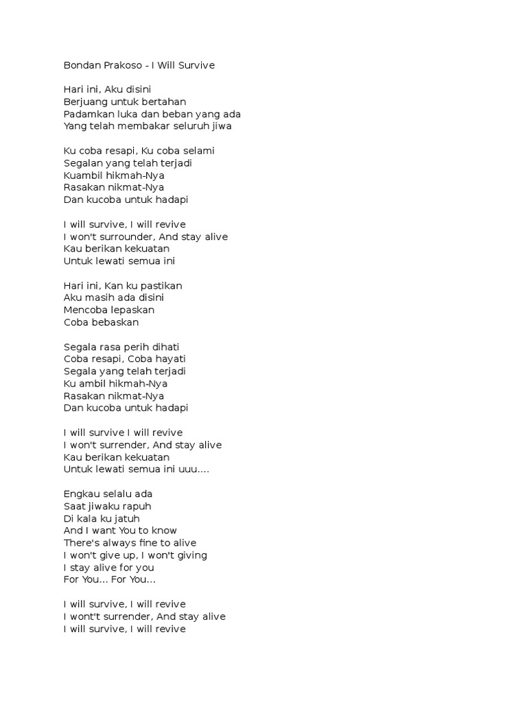 I WILL SURVIVE” LYRICS by BONDAN PRAKOSO: Hari ini, Aku disini…