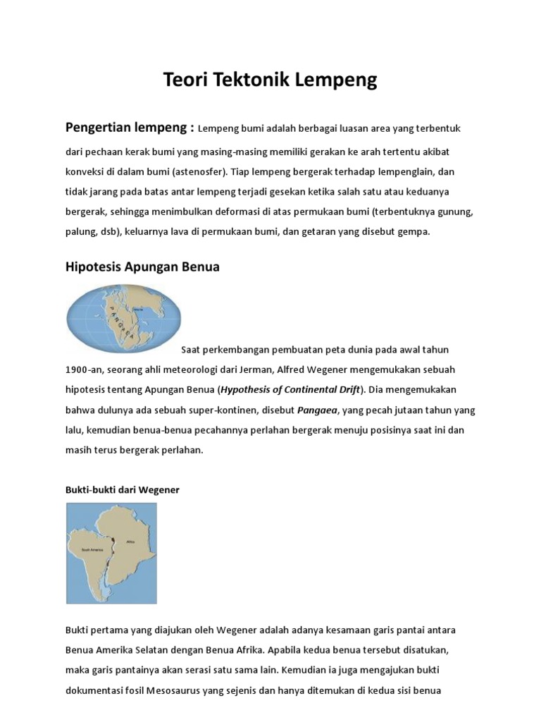 Contoh bukti gerakan lempeng tektonik menurut alfred wegener - Brainly.co.id