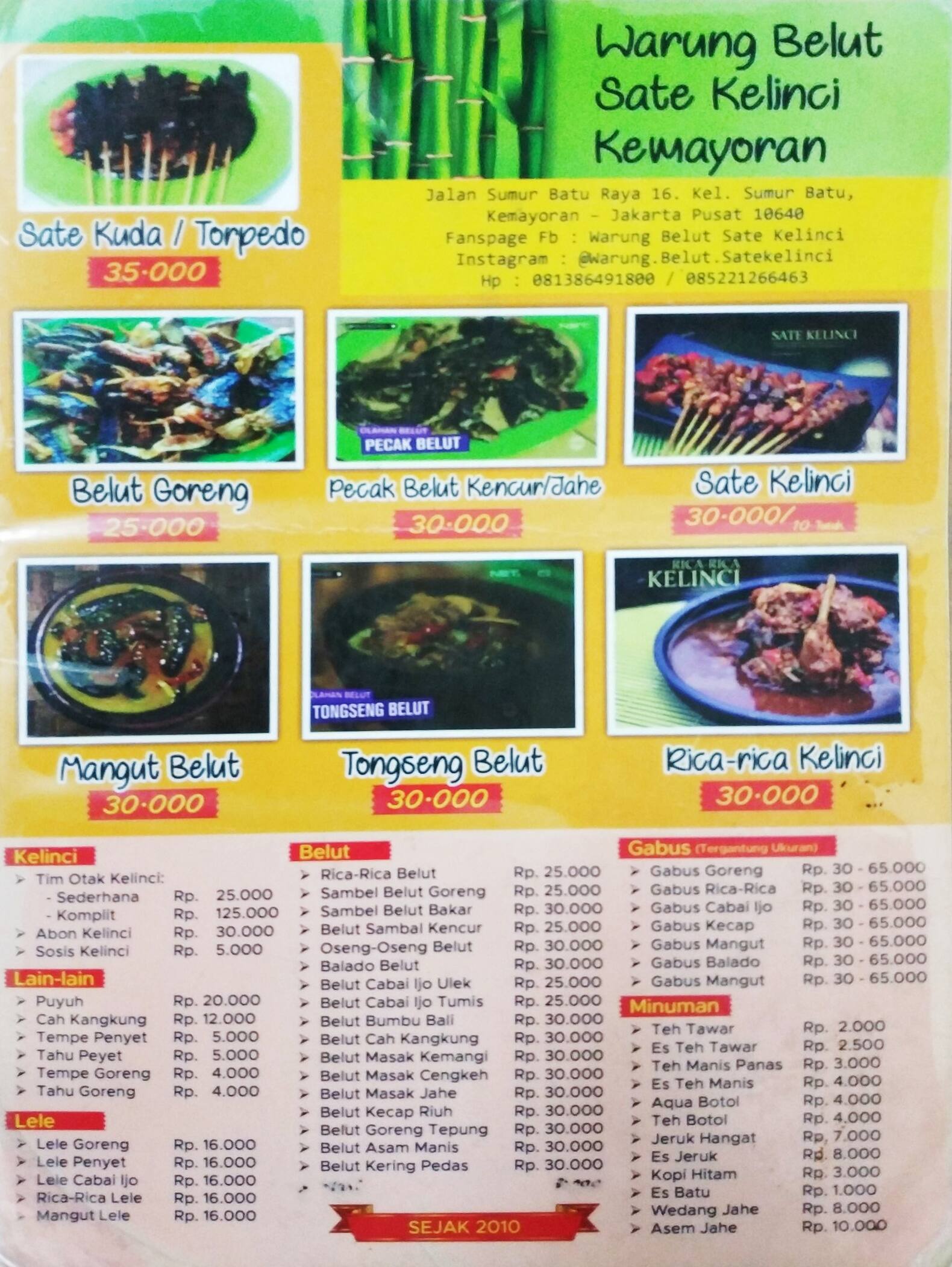 Menu Warung Belut Sate Kelinci Kemayoran, Sumur Batu, Jakarta …