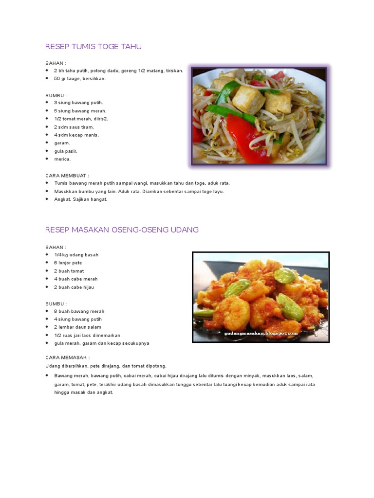 Resep: Selera 120. Tumis Toge Tahu Putih