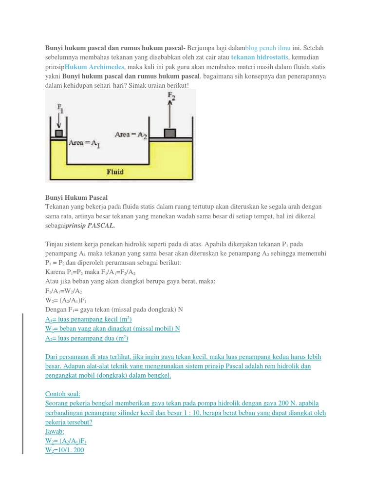 Bunyi Dan Rumus Hukum Pascal | DUNIA TEKNIK