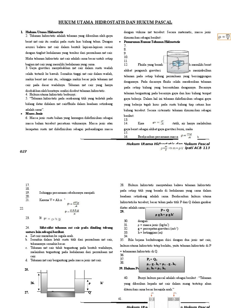 Hukum Utama Hidrostatis Dan Hukum Pascal