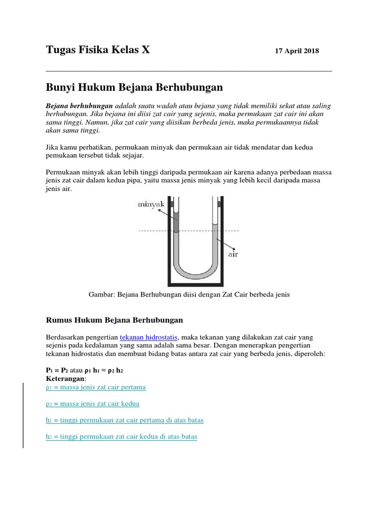 Bunyi Hukum Bejana Berhubungan