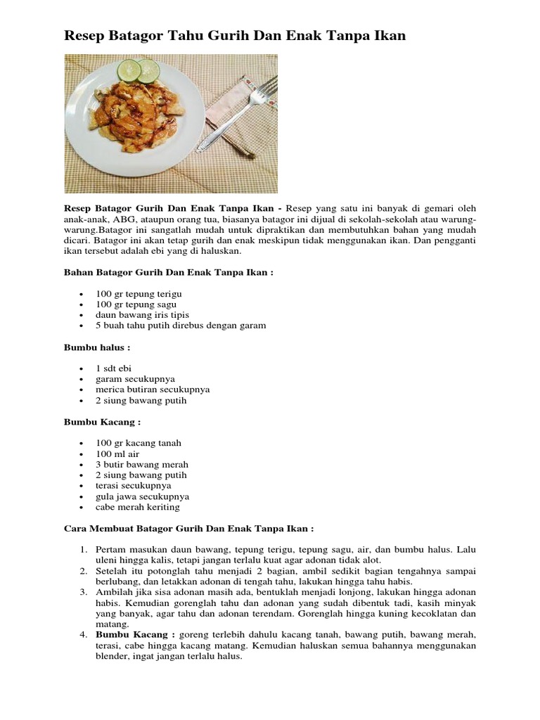 RESEP RAHASIA MEMBUAT BATAGOR TAHU MODAL KECIL UNTUNG BESAR - IDE …