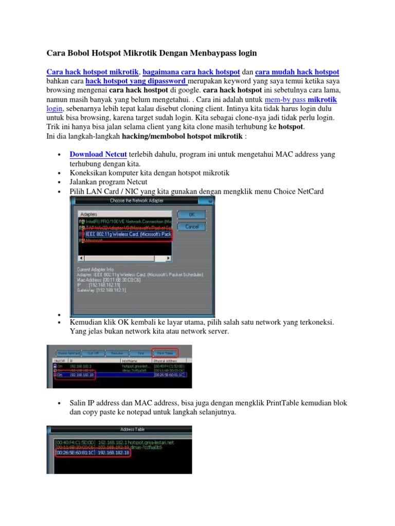 Cara Bobol Hotspot Mikrotik Dengan Menbaypass Login