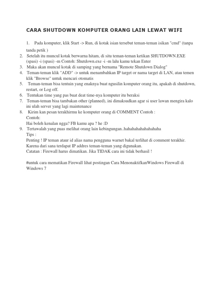 Cara Mematikan Komputer Orang Lain Dari Kejauhan - PDF Free Download
