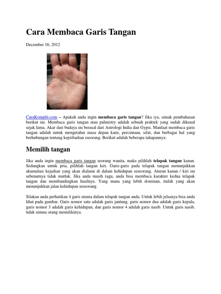 Cara Membaca Garis Tangann