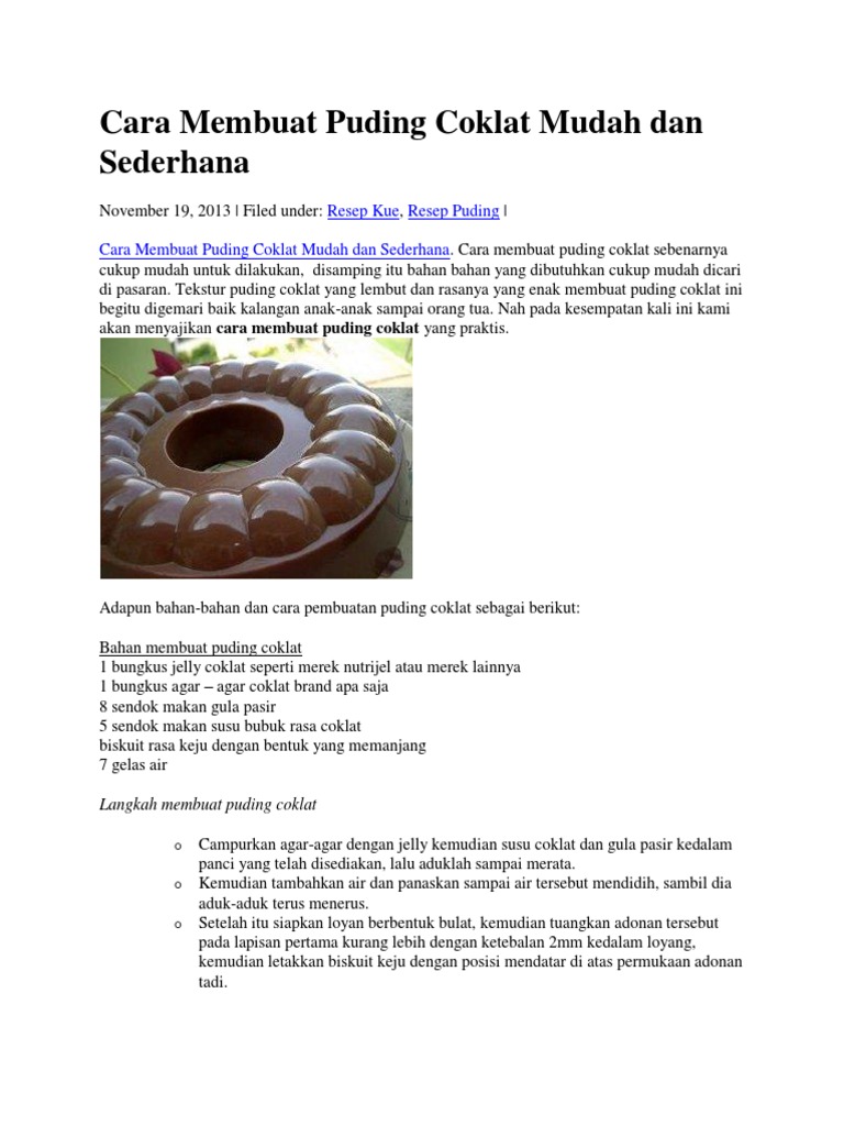 Cara Membuat Puding Coklat Mudah Dan Sederhana