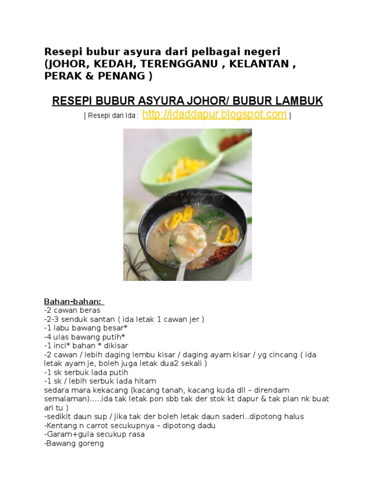 Resepi Bubur Asyura Melaka, Resepi Bubur Asyura Kedah Noxxa