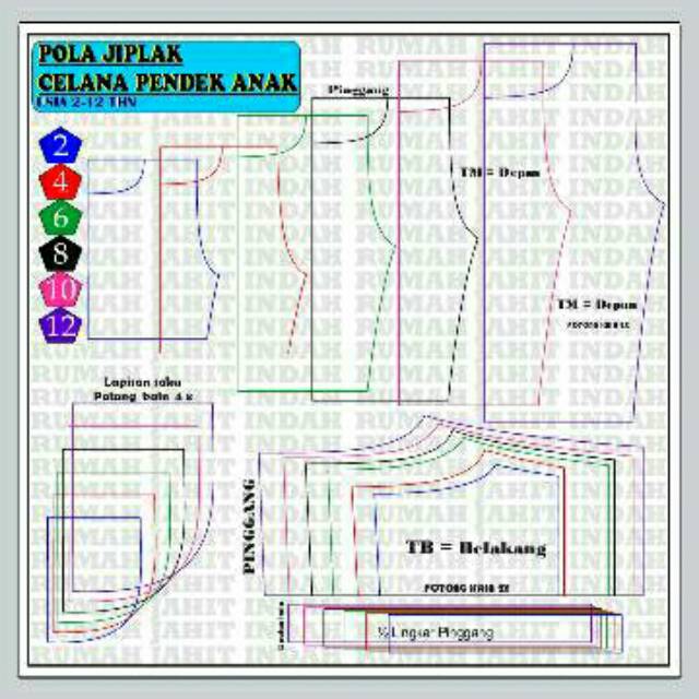 pola jiplak pola jahit pola baju CELANA PENDEK ANAK USIA 2-12THN …