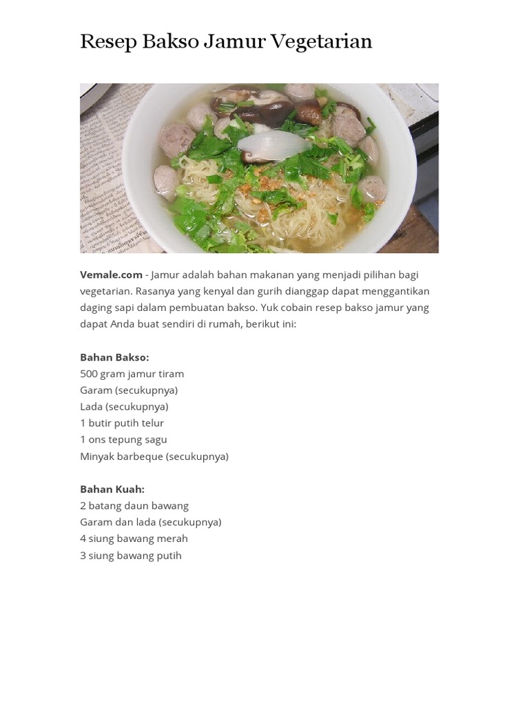Resep Bakso Jamur Vegetarian