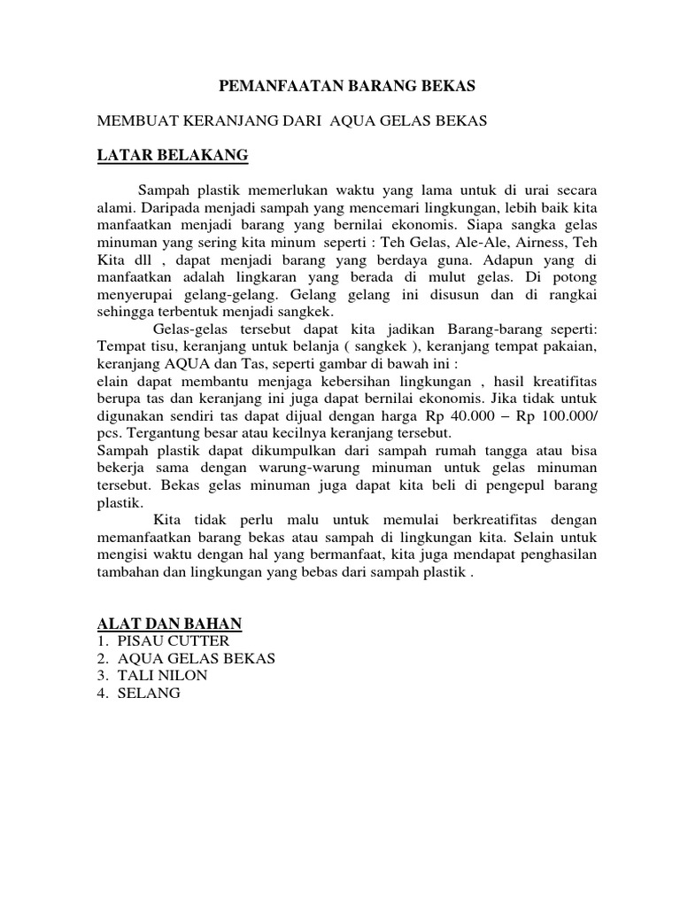 PEMANFAATAN BARANG BEKAS MEMBUAT MEMBUAT TAS DARI GELAS PLASTIK BEKAS.docx