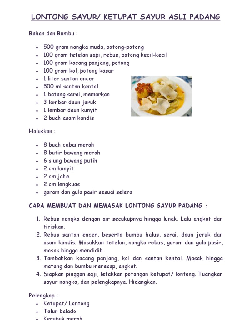 Resep Resep Lontong Sayur Padang | oleh kueresep.com | Craftlog