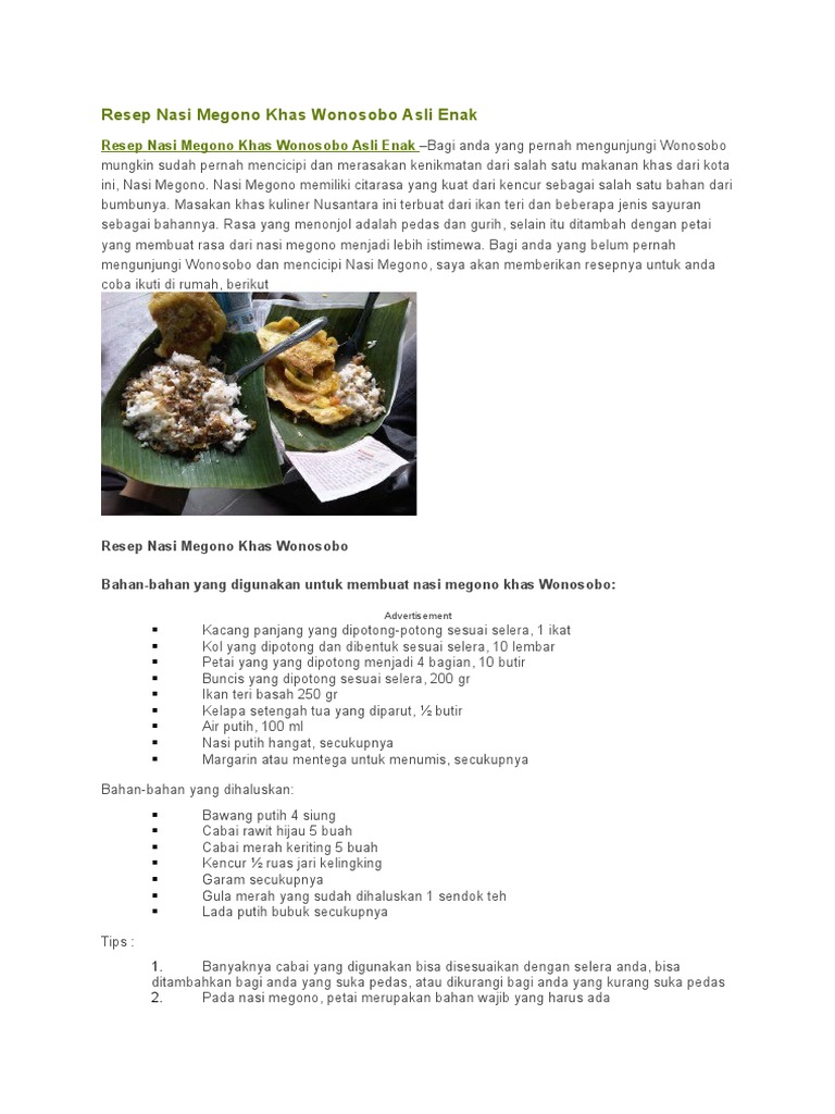 Resep Sego Megono Wonosobo oleh Ermi kartika Dwi Wari | Resep …