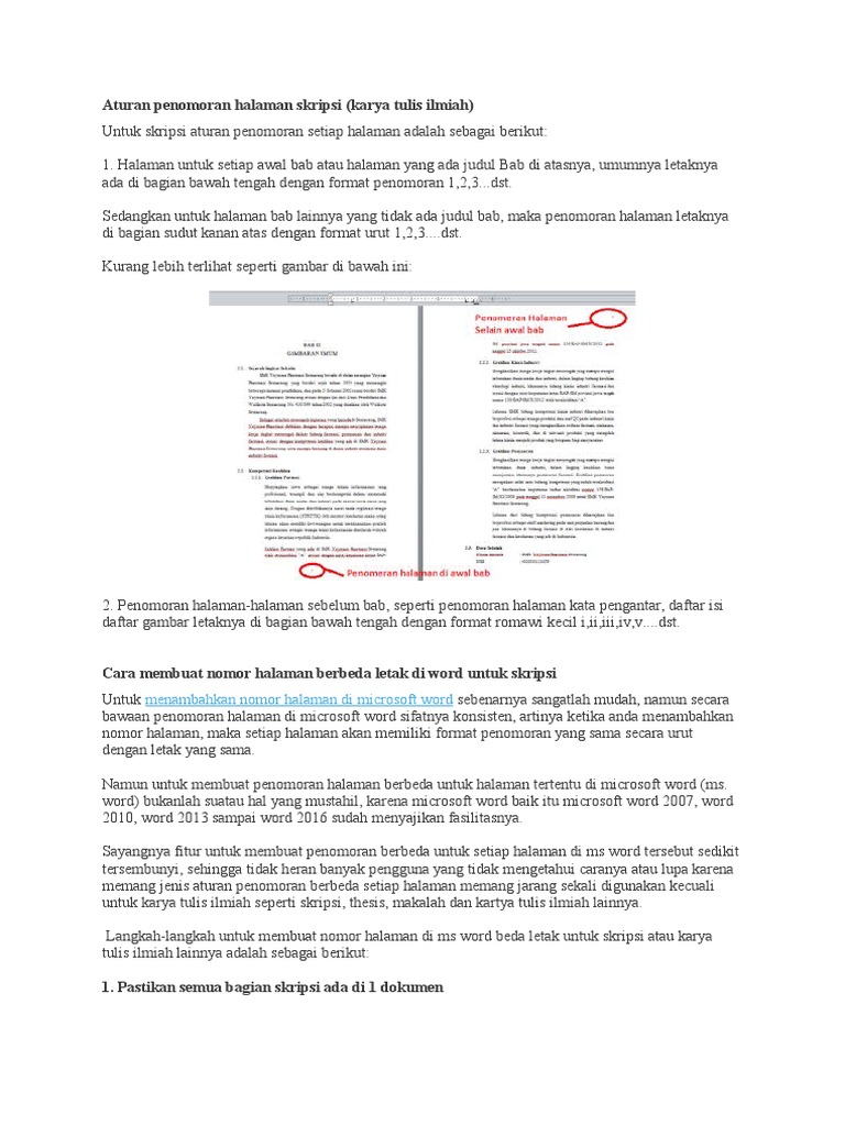 Aturan penomoran halaman skripsi