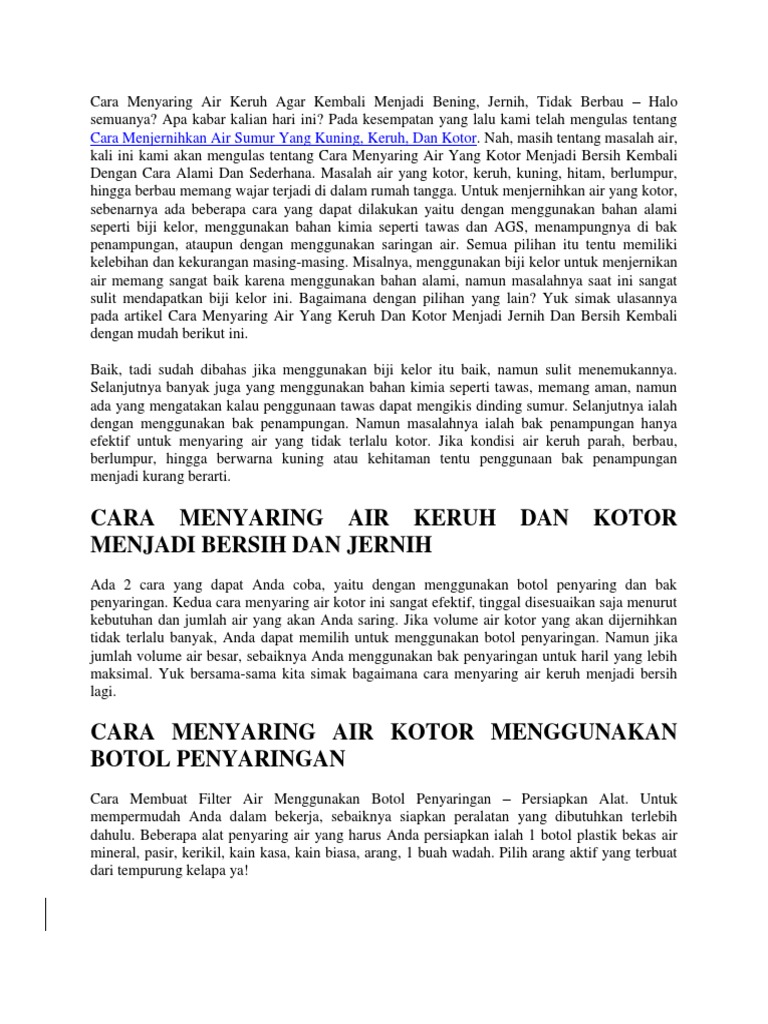 Cara Menyaring Air Keruh Agar Kembali Menjadi Bening