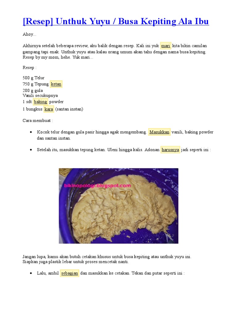 Ini Dia : Cara Membuat Yuyu Mbes - KUMPULANRESEPMASAKAN.INFO